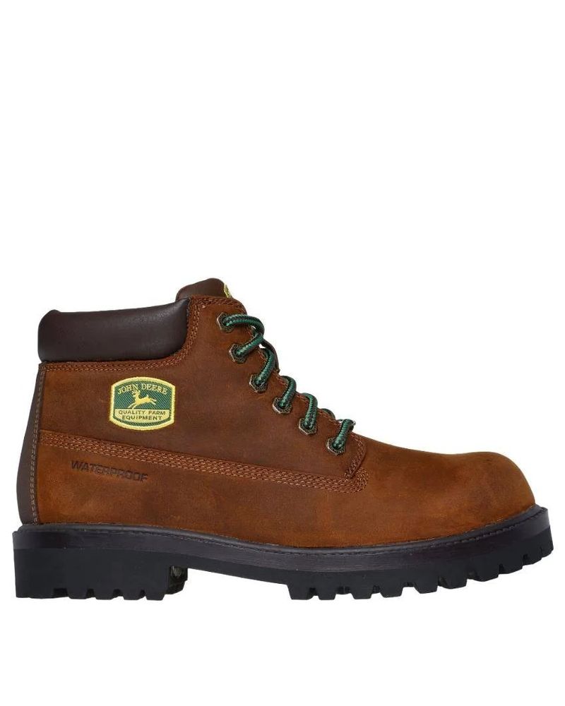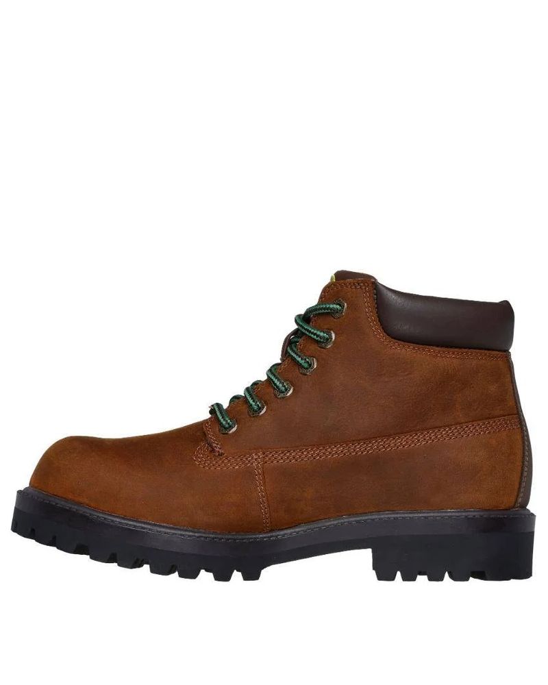 Disfruta de la máxima comodidad durante todo el día con las botas de trabajo Skechers x John Deere: Sergeants – Dozer. Estas botas de corte relajado con cordones presentan una parte superior de cuero impermeable con cuello acolchado y una plantilla acolchada Skechers Air-Cooled Memory Foam.