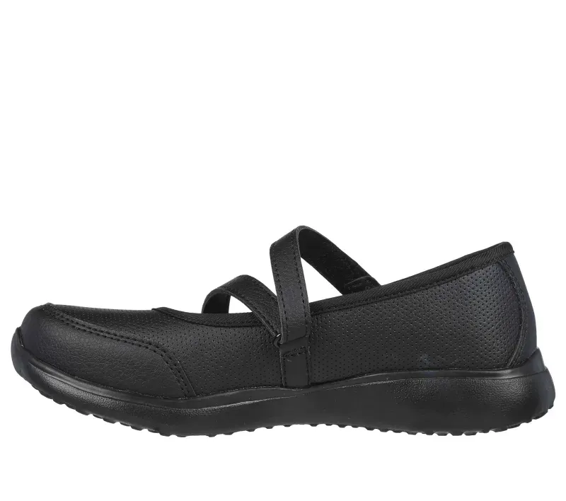 Dale un toque de estilo y comodidad al look escolar de tus hijos con las Skechers Microstrides - School Bus Kicks. Estas zapatillas, que cumplen con el uniforme escolar, cuentan con una parte superior sintética ligera, dos tiras ajustables en el empeine y una plantilla acolchada y cómoda.