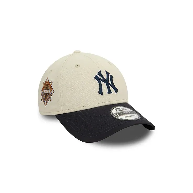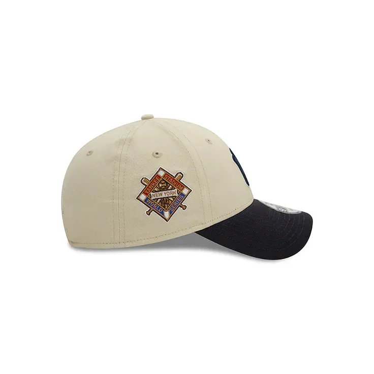 WORLD SERIES 9FORTY NEYYANCO NVY, La gorra mezcla tradición con estilo fresco. Su diseño bicolor en crudo y azul oscuro se complementa con el clásico logo "NY" bordado al frente y un toque especial bordado en el lateral, que le da un aire exclusivo. Tiene visera curva, cierre ajustable tipo strapback y está hecha con materiales resistentes para bancarse el ritmo diario sin perder la facha.
