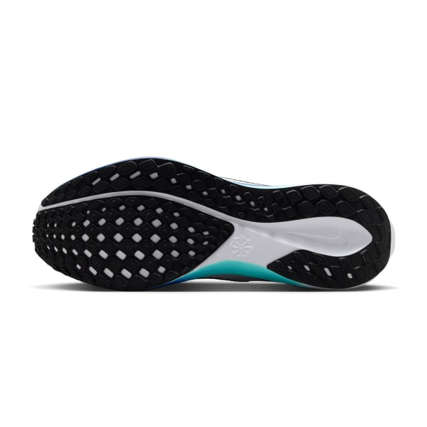 La parte superior está hecha de malla técnica aún más ligera y transpirable, con más zonas de contención en el mediopié, lo que proporciona un soporte torsional óptimo. La entresuela se ha reformulado con el uso del compuesto ReactX que envuelve dos unidades Zoom Air, ahora más estable y elástica para una fase de apoyo más eficiente, un despegue más enérgico y, en general, una zancada más fluida. La banda de rodadura presenta un diseño más ancho y una banda de goma antiabrasión Waffle que proporciona un agarre perfecto al suelo.