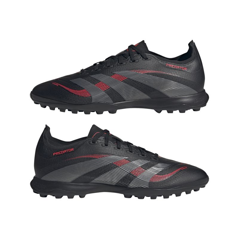 Comienza cada partido sabiendo que perforarás la portería con esta zapatilla de fútbol adidas Predator League creada para marcar goles. Presenta un empeine Hybridfeel con textura en relieve e inserciones Strikescale que te proporcionan un control excepcional del balón en cada disparo. La suela de goma estriada te garantiza una excelente tracción en campos de moqueta.