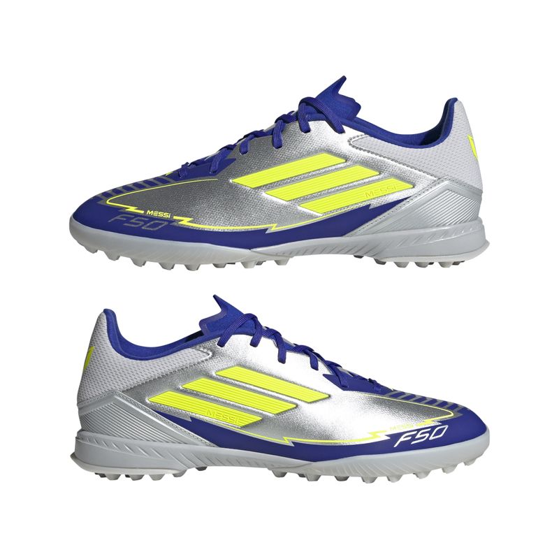 La velocidad legendaria de los F50. Las habilidades mágicas de Messi. Parte de una colección diseñada para adaptarse a las preferencias del GOAT en la cancha, estos chimpunes adidas League tiene un exterior HybridTouch flexible con una cómoda lengüeta sintética. La suela de caucho ranurada ofrece propulsión en césped artificial.