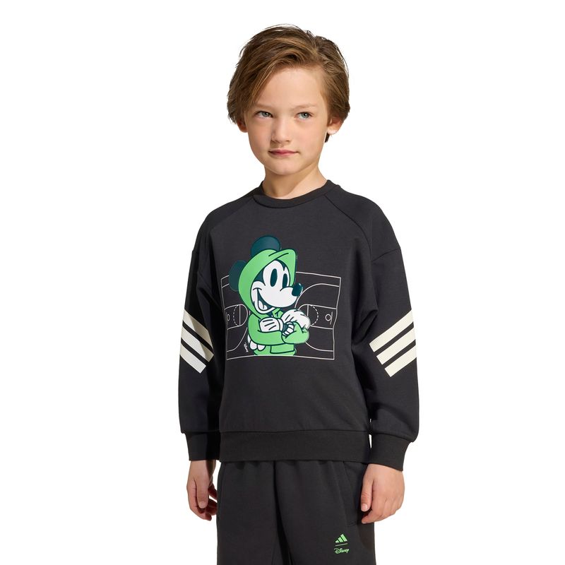 A los niños les encantará presumir de su personaje de Disney favorito con esta cómoda sudadera de adidas. Confeccionada en tejido entrelazado deportivo con corte holgado, el llamativo diseño de la sudadera destaca con un clásico gráfico de Mickey Mouse realizado en tinta brillante. Las 3 Franjas llamativas en la parte inferior de las mangas muestran el emblemático símbolo. Combina este cuello redondo con unos joggers y unas zapatillas a juego para conseguir un diseño elegante y pensado para los niños.