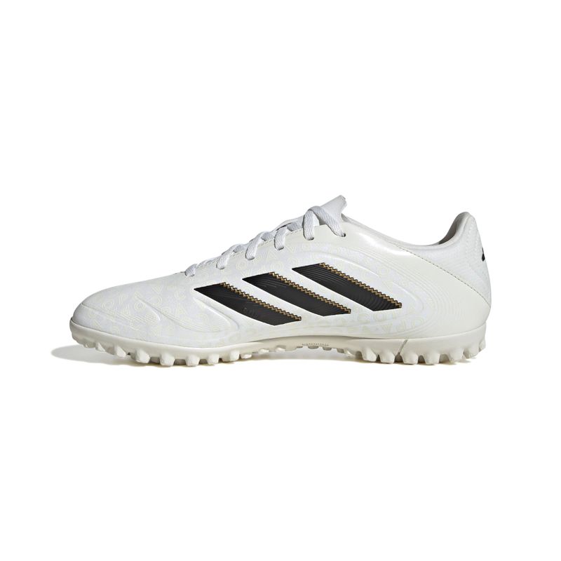 Cada toque hábil. Cada pase exquisito. Combina tu juego perfecto con los guayos Copa Pure 3 para una conexión impecable con el balón en todo momento. Estos guayos adidas Club tienen un exterior de material sintético suave con unEstampado 3D en el empeine que mejora el contacto con el balón. La suela de caucho con tache, que se hunde en superficies de césped artificial, mantiene tu fútbol con clase.