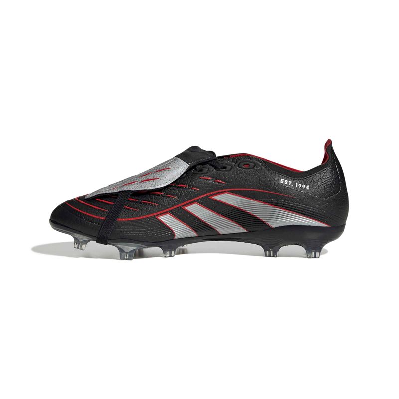 Esta bota de fútbol Elite de edición limitada renueva la clásica combinación de colores Predator con un toque plateado para brindarle un aspecto de lujo inspirado en los coches deportivos. El empeine HybridFeel presenta una textura en relieve, una lengüeta plegable e inserciones Strikeskin de gran agarre. La suela Controlplate garantiza una gran estabilidad tanto en campos de césped natural seco como artificial.